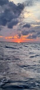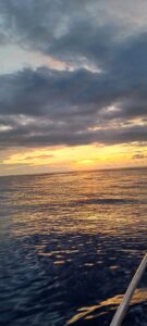 Finally, we made it across the Gulf Stream, and all of a sudden the seas smoothed out. About an hour later, the sun started to come up. When I looked at the water, it wasn’t the dirty, smelly Stuart, Florida brown anymore. It was clear and beautiful. My people were oooing and ahhing.