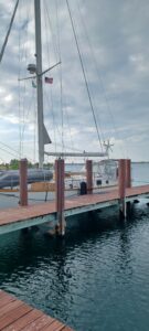 Not long after that, we arrived at a place called West End on Grand Bahama Island. We pulled into the bay and tied up at a dock right in front of a small gas station. Dad said we all had to stay on board until he figured out the procedures. Every place is different, and only the Captain is allowed to get off the boat at first.